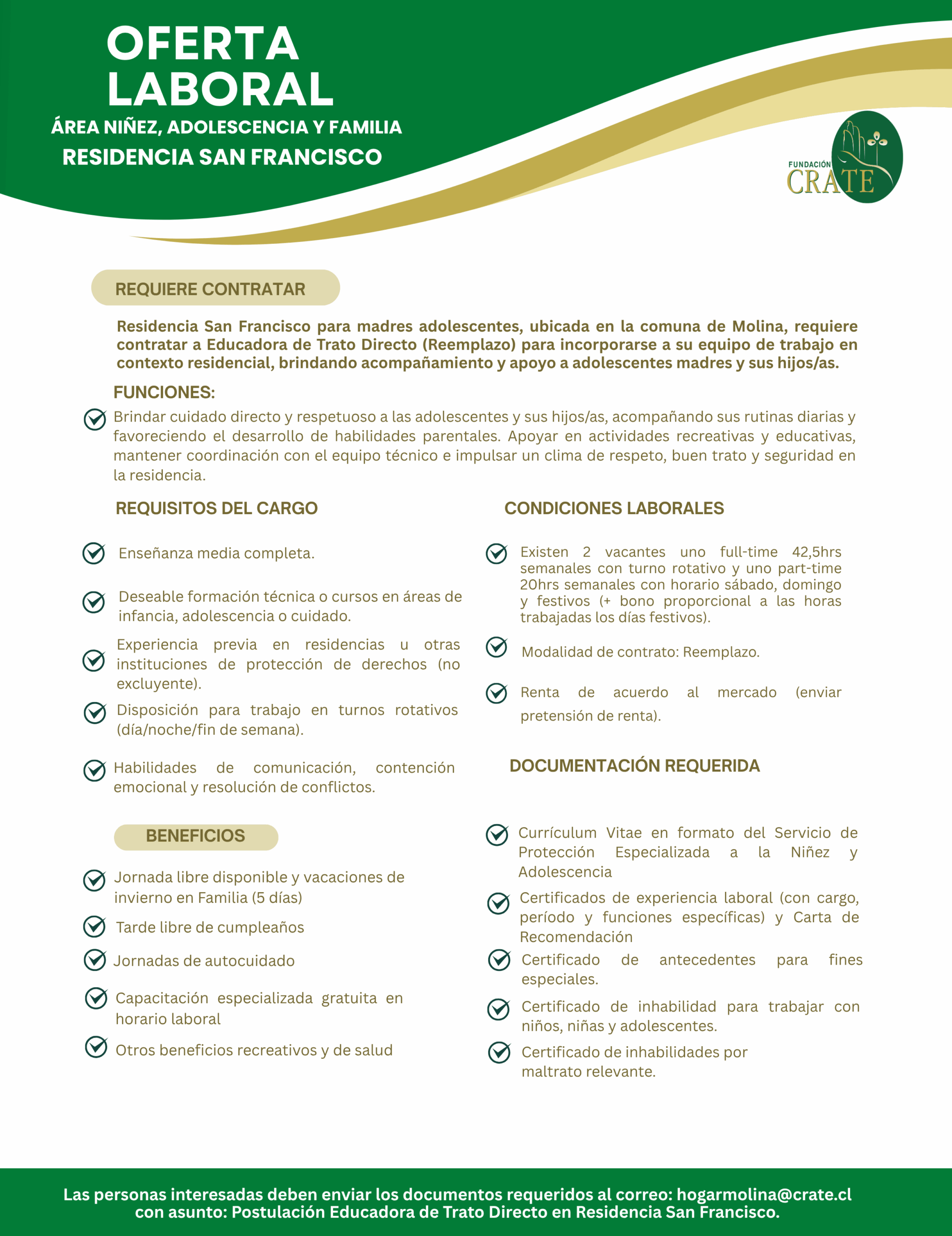 BUSCAMOS EDUCADORA DE TRATO DIRECTO PARA REEMPLAZO EN MOLINA Empleos disponibles / Equipo Comunicaciones BUSCAMOS EDUCADORA DE TRATO DIRECTO PARA REEMPLAZO EN MOLINA Leer más ”